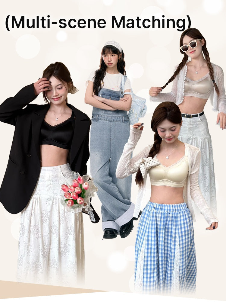 PACK OF 3: VEIMIA Delicate Lace Bra Anti-sagging Lift & Wireless Soft Support With Airy Pads, Silky Satin For Gentle Comfort