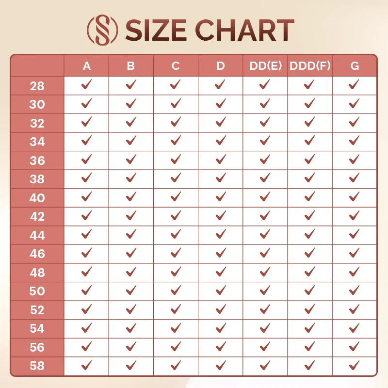 Band sizes: 28, 30, 32, 34, 36, 38, 40, 42, 44, 46, 48, 50, 52, 54, 56, 58